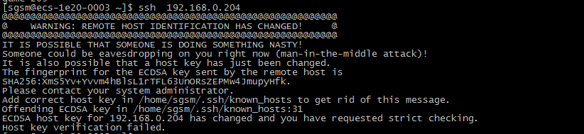 编辑 .ssh/known_hosts 文件 找到 有问题的ip,删除哪一行登陆信息就ok了