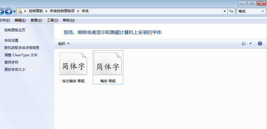 1.从 windows 下控制面板->字体->选择一种中文字库例如“楷体”