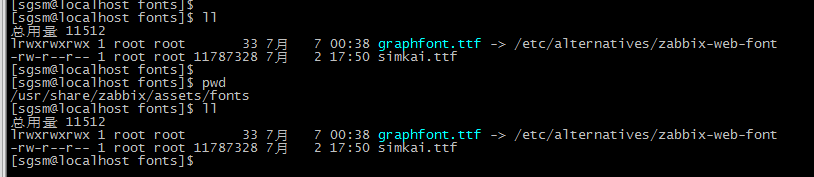 2.将字体上传至/usr/share/zabbix/assets/fonts (根据zabbix的安装位置 可以使用find查找一下路径) 目录下