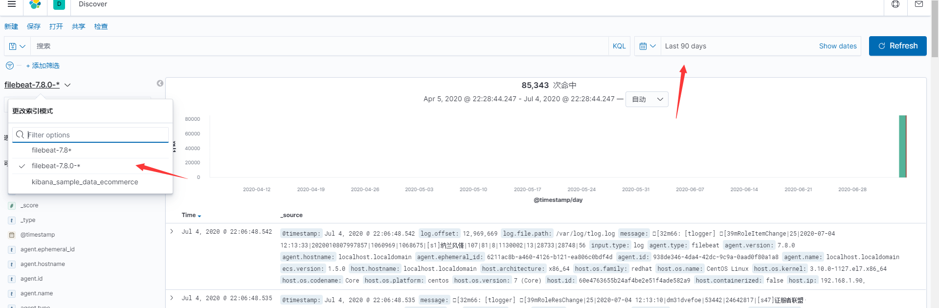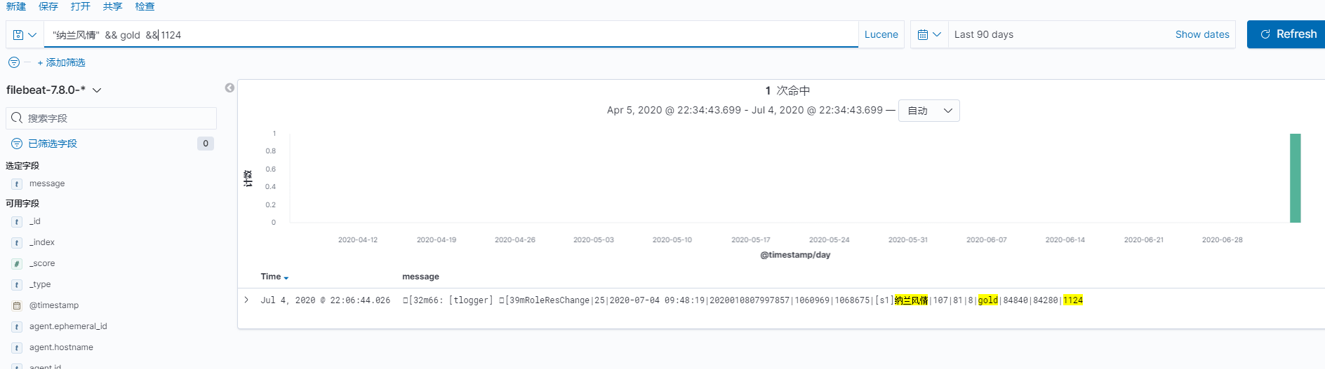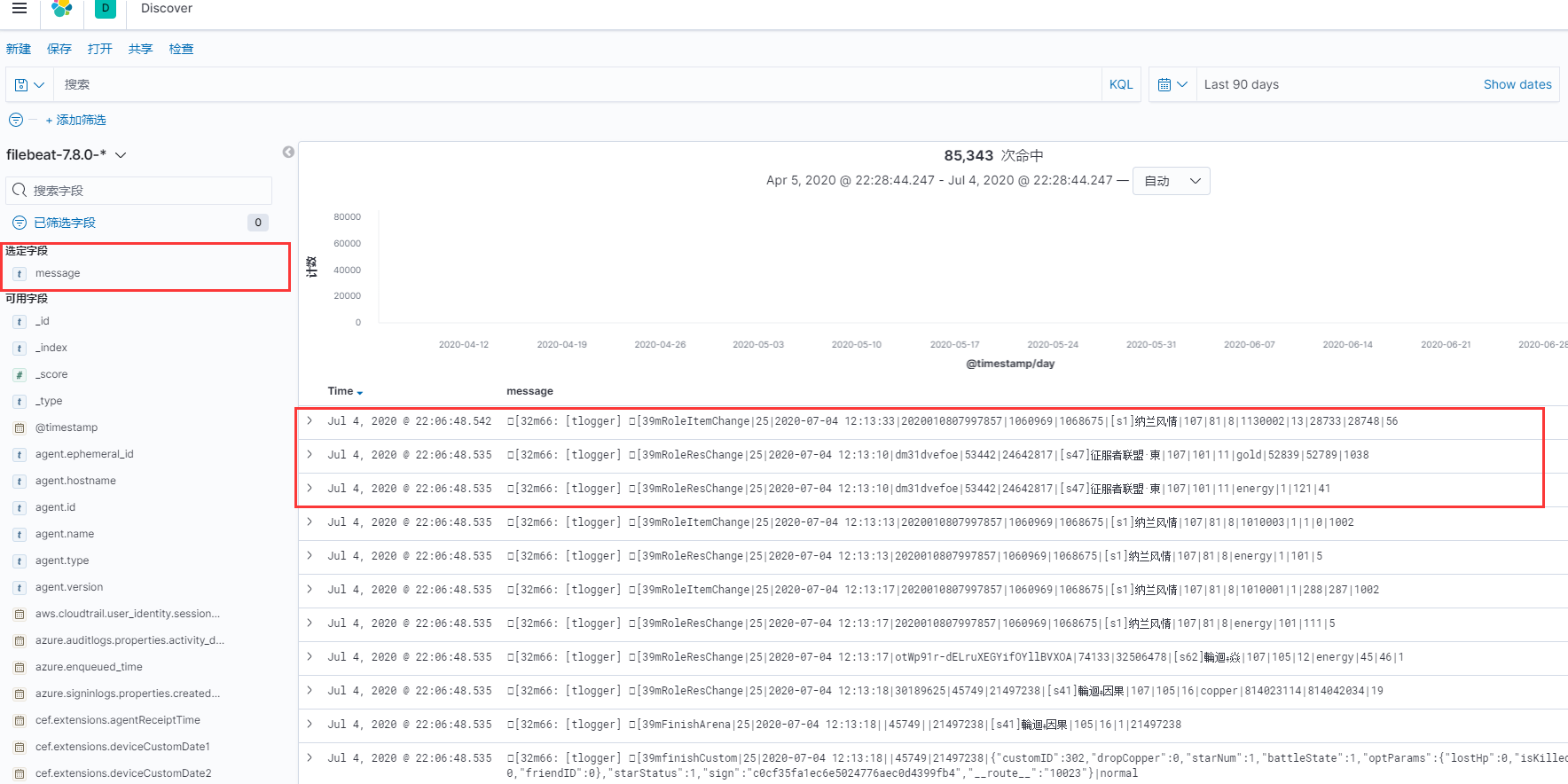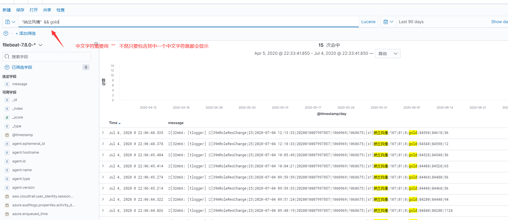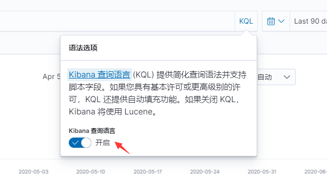 筛选日志 先把这个Kibana 查询语言(KQL) 关闭