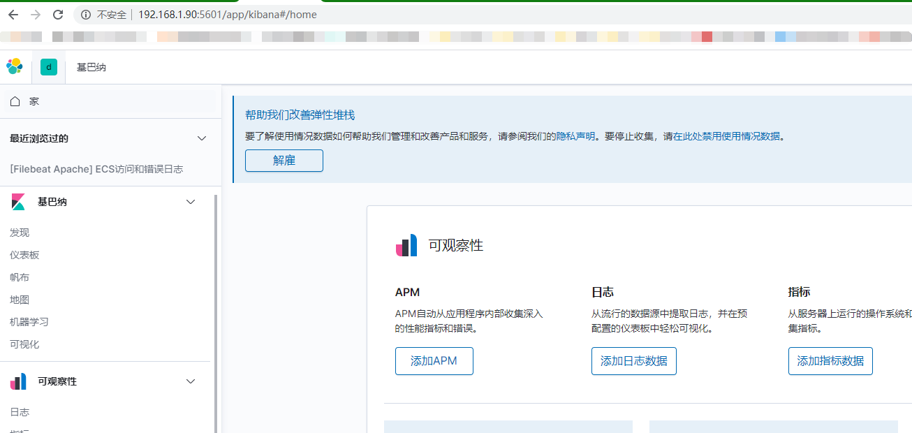 如果在创建索引的时候没有filebeat这个索引,就重启下filebeat 、 elasticsearch 和 kibana(如果kibana 不重启会读取elasticsearch 失败 正常启动的时候 也要先启动elasticsearch )