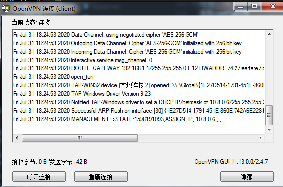 现在我们进行启动openvpn客户端,进行连接