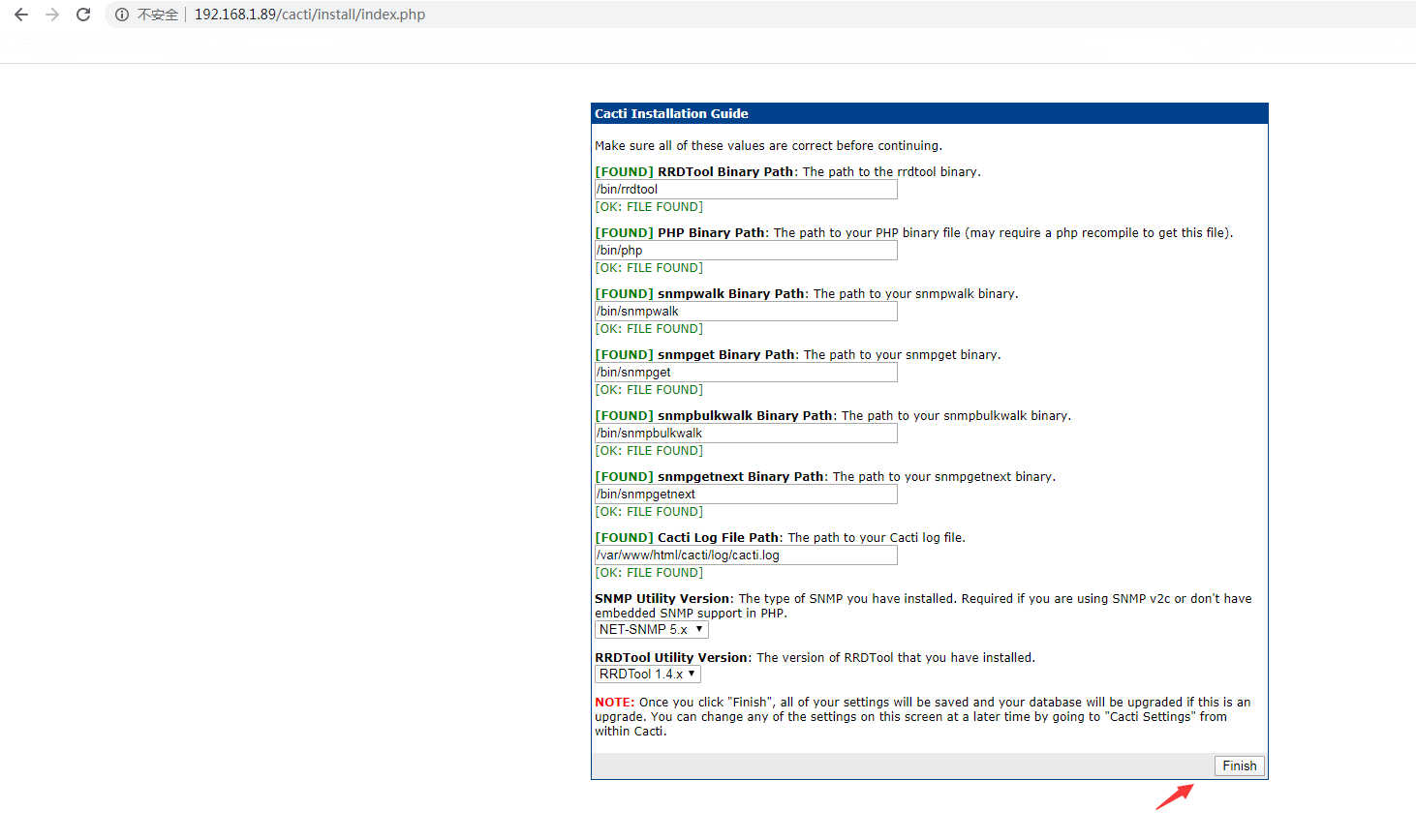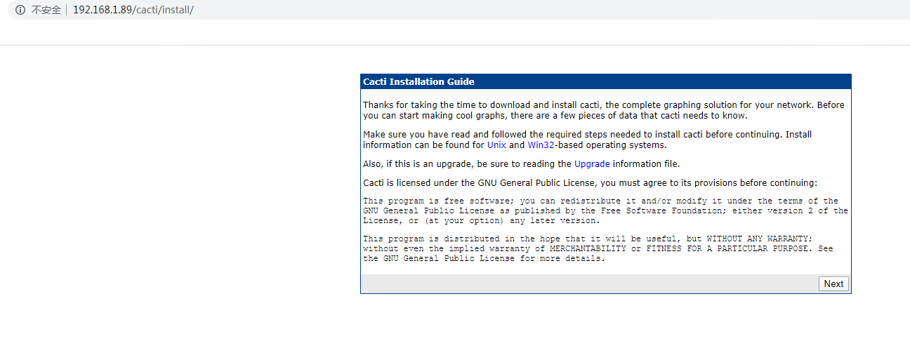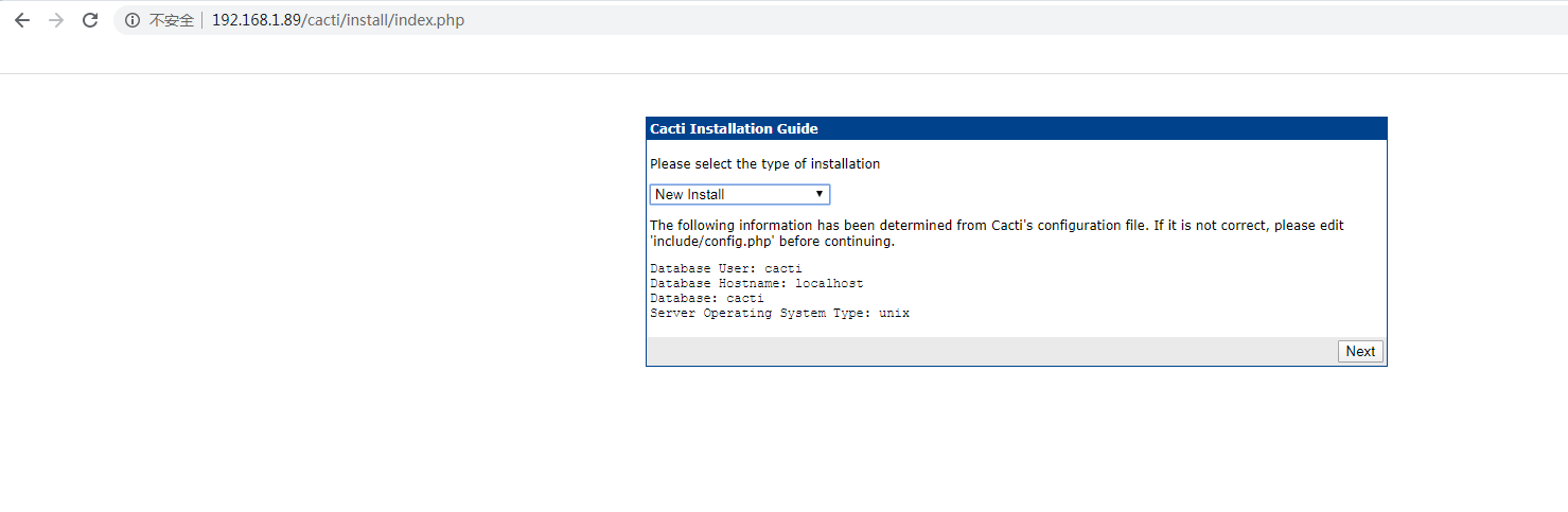 浏览器访问cacti管理页面进行安装