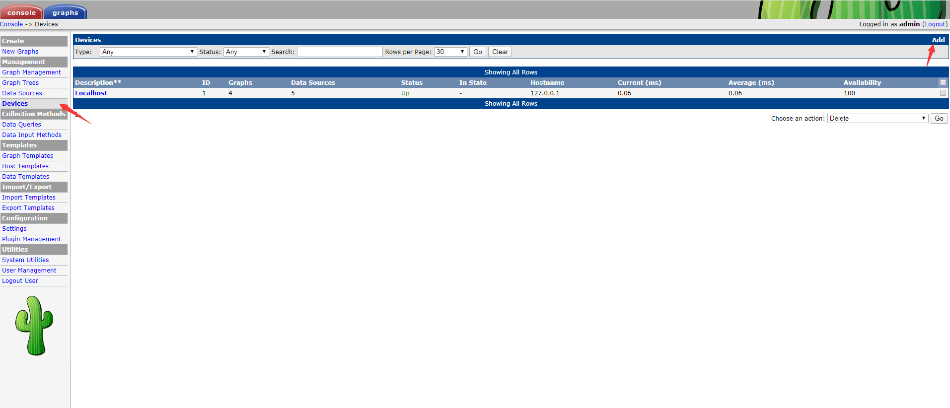 http://cacti_ip/cacti 首次登录用户名和密码均为admin,之后可以设置新密码