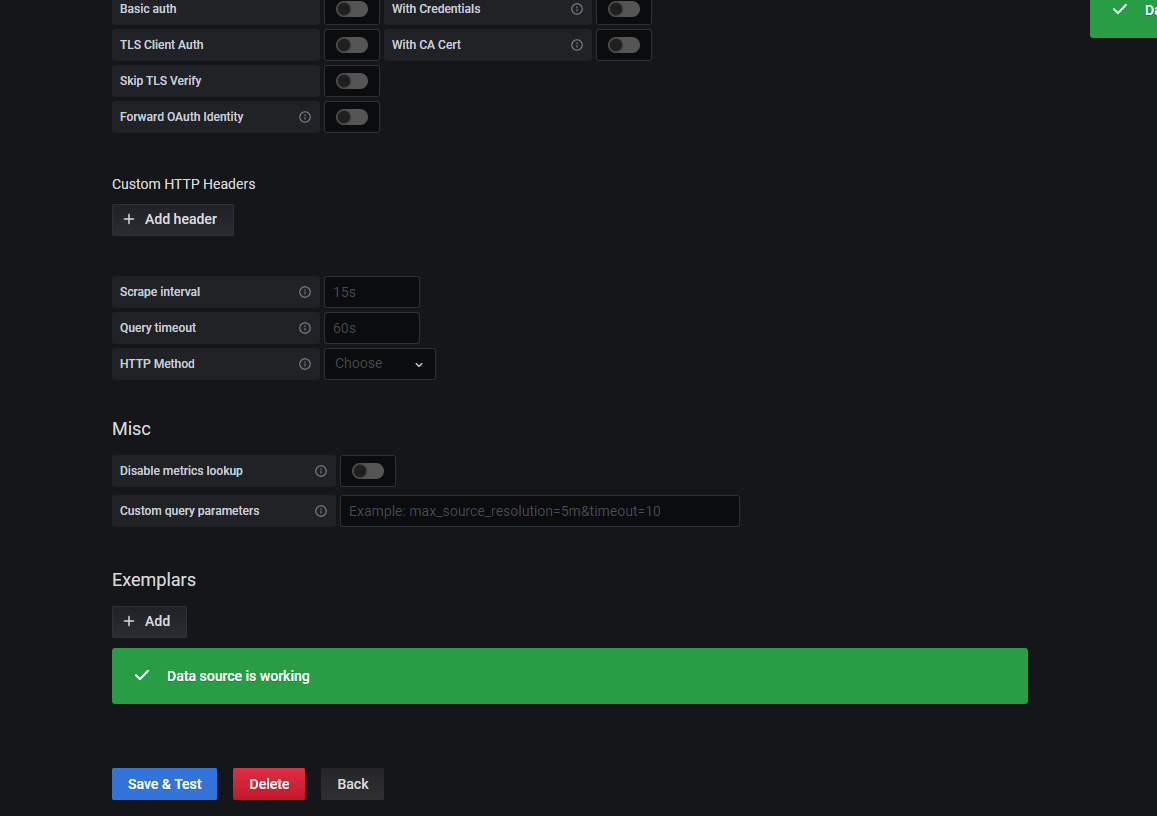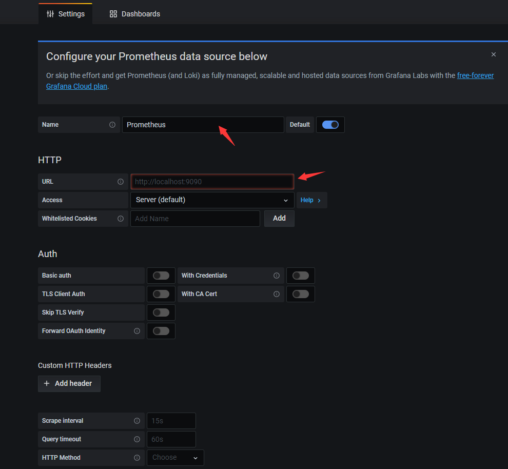 输入名字以及prometheus的url–url为prometheus服务器的地址和端口